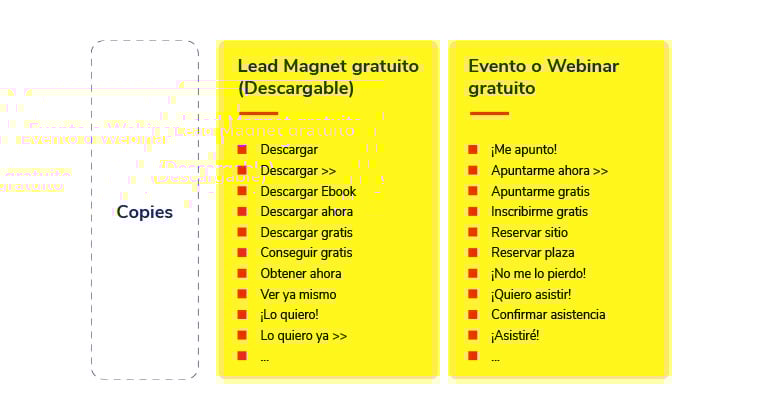 Una vez superado el miedo a la página en blanco y con los copies de tu Landing Page ya preparados piensa en el contenido de tu botón o llamada a la acción. Mira este ejemplo: