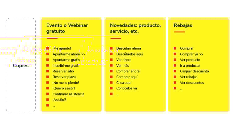 Una vez hayas redactado todos los copies del email es momento de pararse a pensar en el botón de la llamada de acción. Mira estos ejemplos: