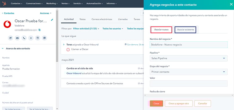Cómo crear un Negocio desde un registro de contacto o empresa