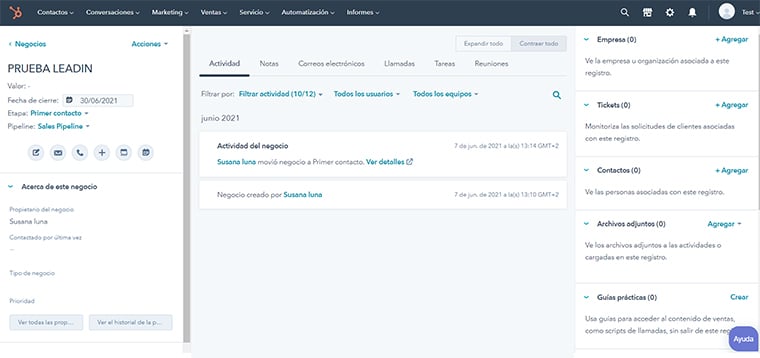 Bueno no me enrollo más: vamos con todo lo que necesitas saber sobre la ficha de negocio de HubSpot.
