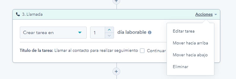 6. Si deseas añadir alguna acción adicional, como editar las tareas, cambiar el orden, e incluso, eliminarlas, puedes hacerlo cómodamente clicando en Acciones, como ves aquí: