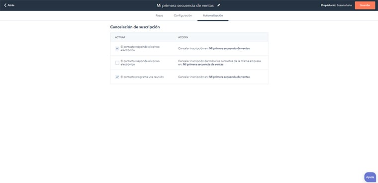 9. Una vez tienes configurada la secuencia pulsa en Guardar.