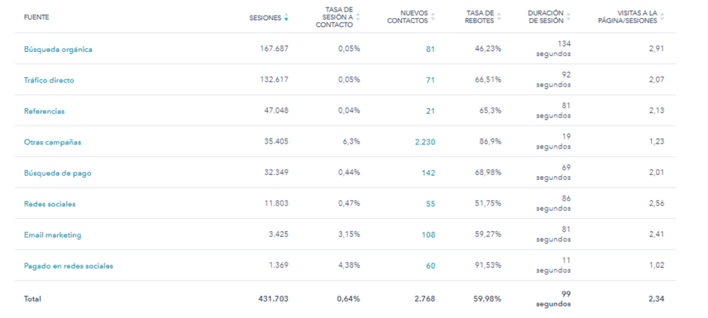 Y estas fueron las fuentes de tráfico. Los resultados fueron muy positivos en búsqueda orgánica, donde iban la mayoría de nuestros esfuerzos, como vemos aquí: